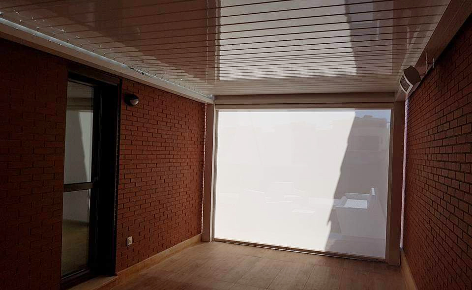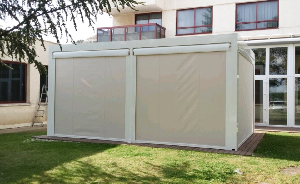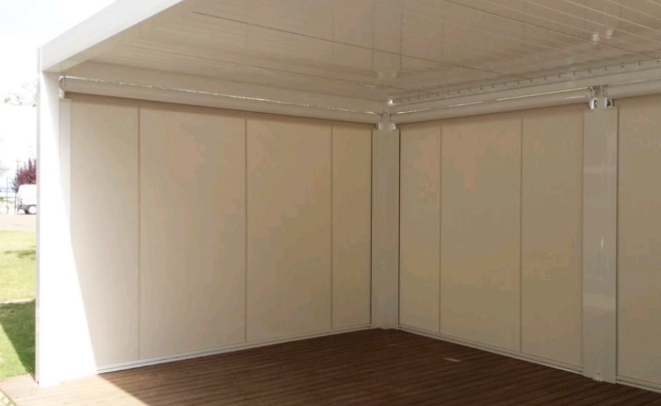 Con opción a colocar telones verticales en todo el perímetro y realizar un cerramiento completo.